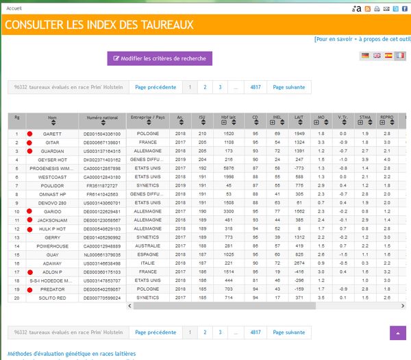 Le TOP 20 Isu des taureaux confirmés est dominé par les taureaux que nous distribuons : 8 sur 20 soit 40 % ! Ces 8 géniteurs affichent des CD de 93 et plus. Les 4 plus hauts sont indexés à plus de 1500 kg de lait en moyenne avec GARETT à +210 ISU, le n° 1, qui frôle les 2000 kg ! (voir tableau en bas de page)